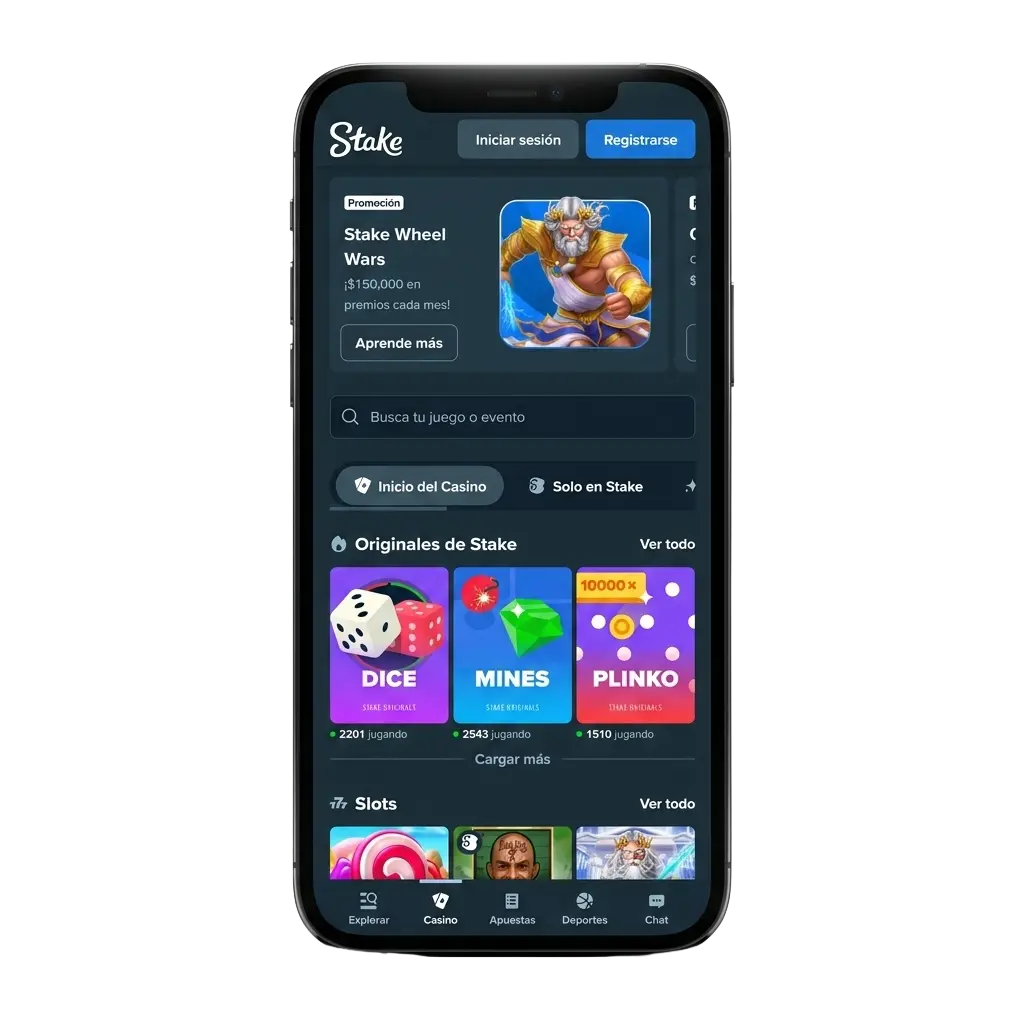 La app de Stake.com para iOS te da acceso completo a casino y apuestas deportivas desde tu iPhone o iPad. Instala la app, regístrate y empieza a jugar en minutos. Participa cada semana en el Sorteo Semanal con una bolsa de 75.000 USD, compite en la Carrera Diaria de 100.000 USD y reclama tu parte en Stake Wheel Wars con 150.000 USD en premios. Descarga la app ahora y aprovecha todas las promociones disponibles para jugadores en Chile.